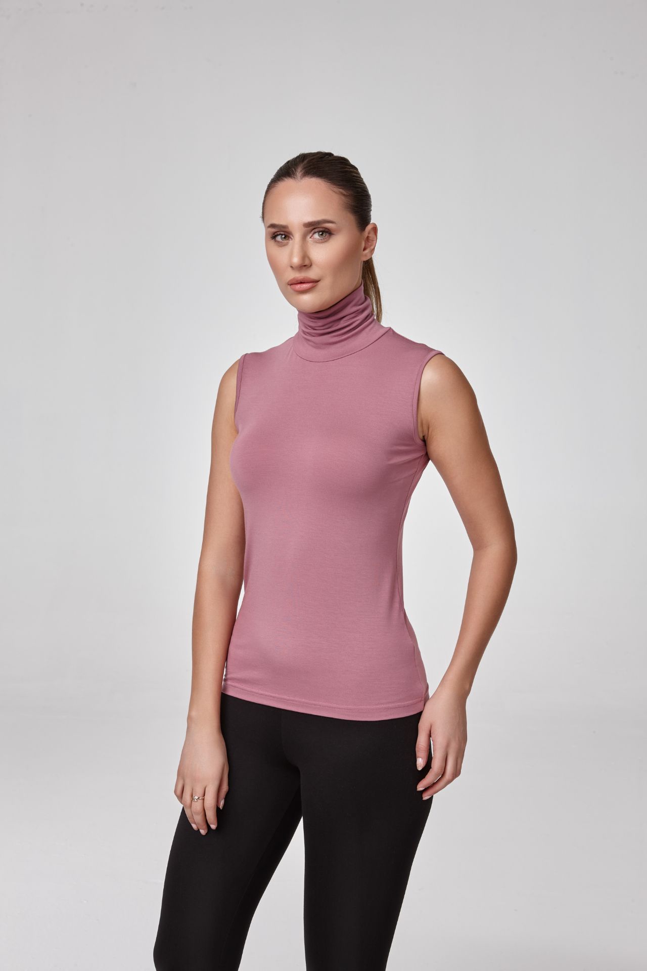 Kadın Kolsuz Balıkçı Yaka Bluz Body Fit Kalıp GÜL KURUSU P2602GÜL KURUSU