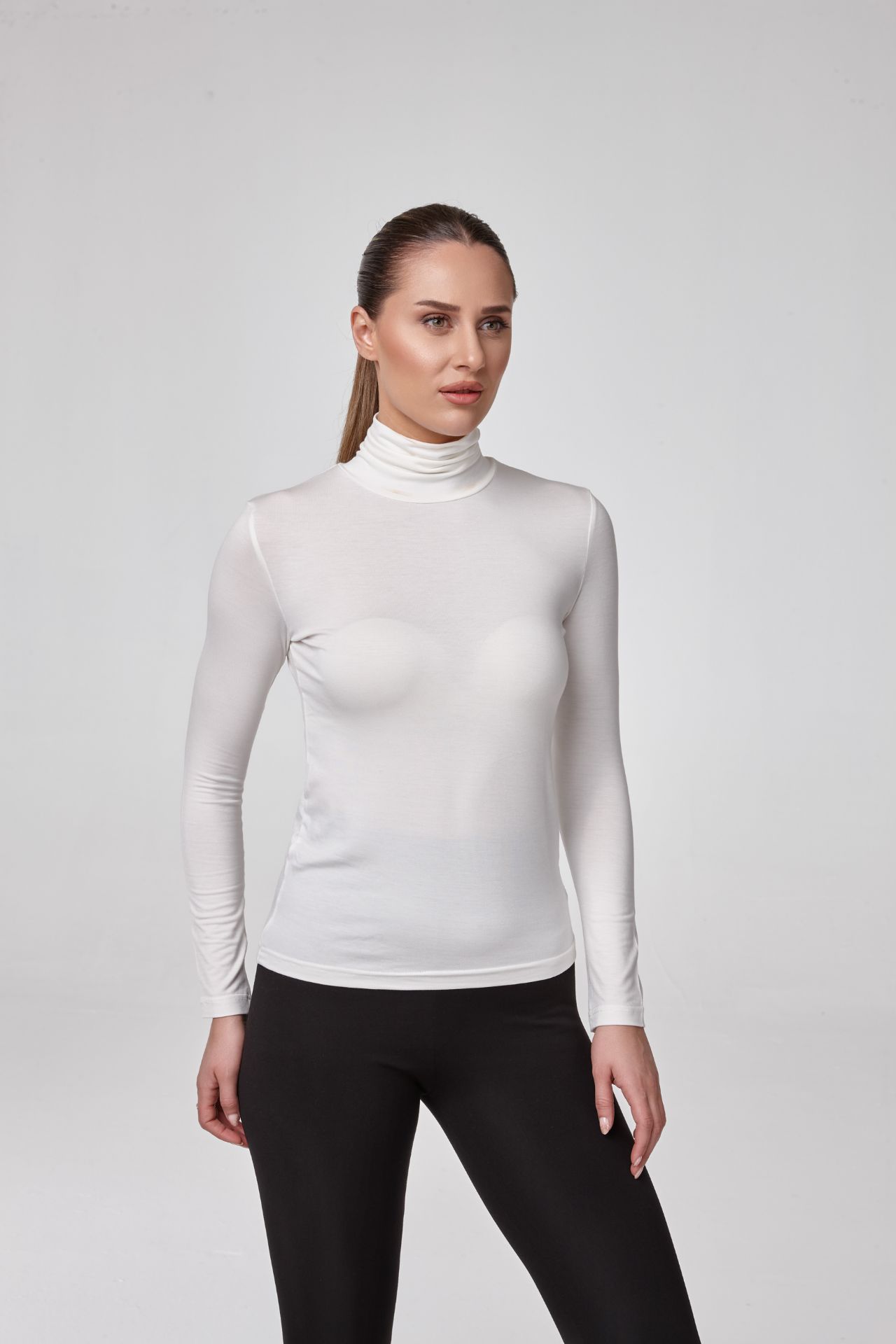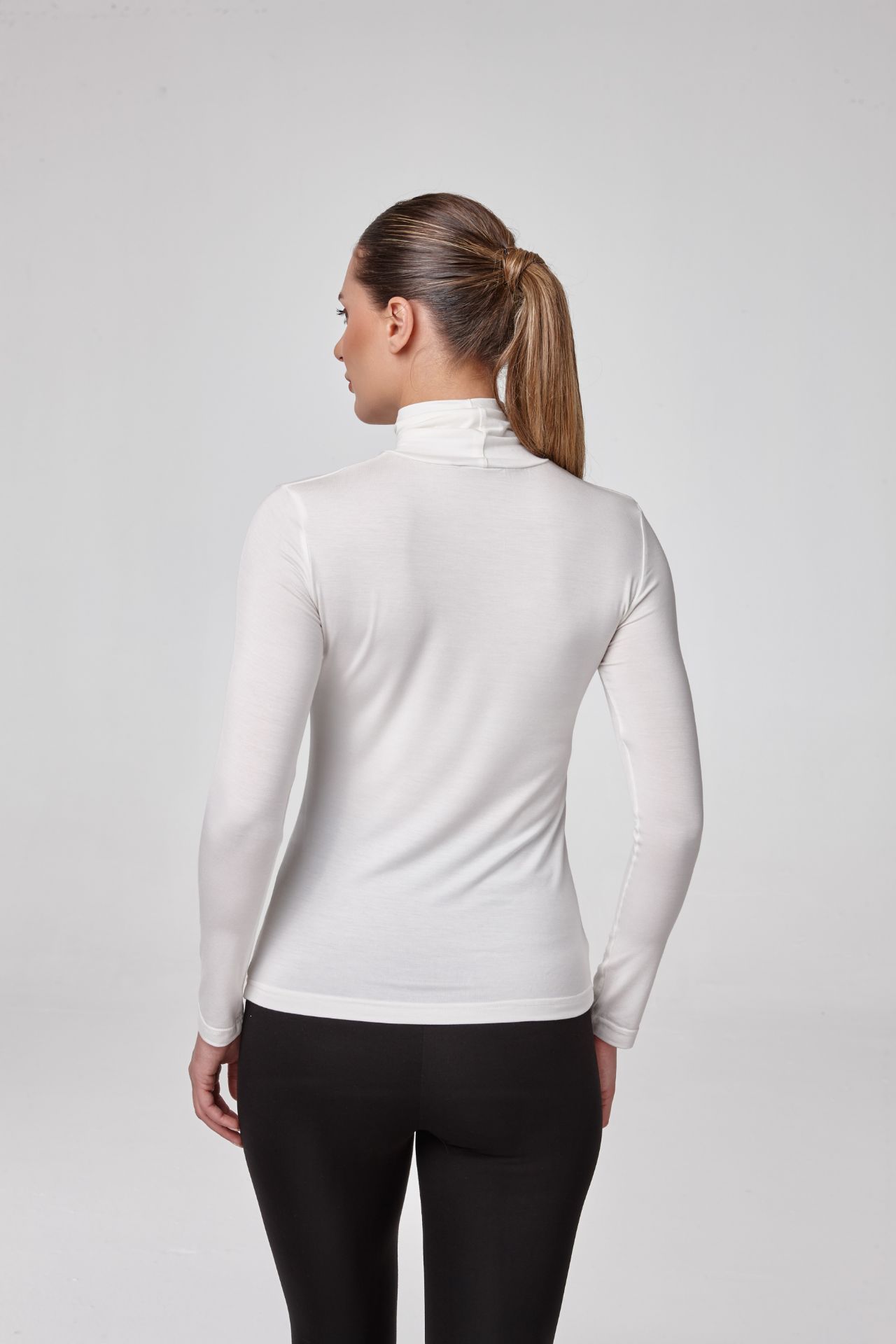 Kadın Uzun Kollu Balıkçı Yaka Bluz Body Fit Kalıp EKRU P2602-1EKRU